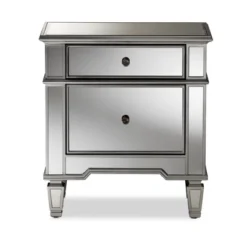 Sweet dreams abound with the Larese bed. This chic bed is upholstered in an elegant linen-like fabric that provides ample comfort for you to lean against as you read or watch TV. The headboard features a scooped silhouette highlighted by glamourous silver studs, giving the piece an air of modern luxury. Black feet complete the look. Stylish and practical, the Larese is fitted with two drawers at the footboard with space to store clothes, sheets, and more. The Larese bed is made in Malaysia and requires assembly. Dimensions: 46.26″ high x 84.65″ wide x 80.12″ deep; Headboard: 24.41″ wide x 80.12″ long x 2.76″ thick; Distance between slats: 5.98″; Height from floor to top of slat: 10.63″ high; Legs: 2.36″ high; Drawers: 38.43″ wide x 18.5″ deep x 5.31″ high; Inside dimensions (mattress size): 76″ wide x 80″ deep