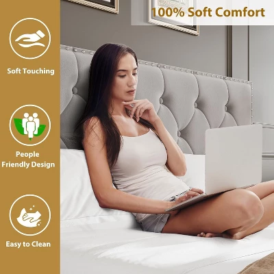 - 【Ultimate Back Support】Our bedframe is fully upholstered, providing plush support that makes reading or watching TV in bed a true delight. The tall, padded headboard ensures maximum comfort, allowing you to lean back with ease. Plus, the adjustable headboard accommodates mattresses of various thicknesses, ensuring the perfect fit for your needs.