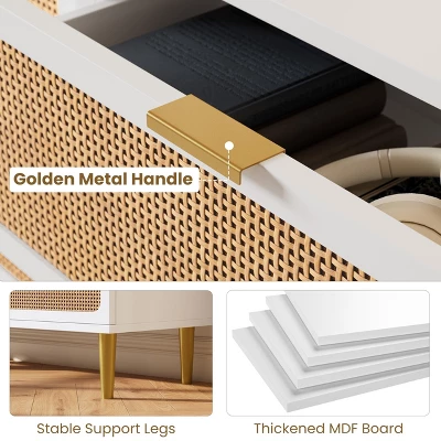 - Unique Natural Rattan Dresser: 6 drawers dresser for bedroom with a simple design, and natural rattan doors skilled craftspeople have woven the product by hand. The natural beauty of the rattan gives each bedroom dresser a unique expression and also keeps rattan dresser airiness and strengthening damp-proof, bringing a piece of nature into your home.