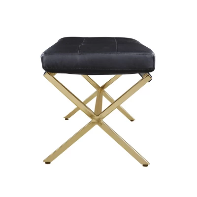 Updated traditional design features chic, tufted PU leather – textured fabric with a stylish gold tone metal X frame.