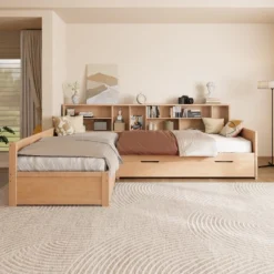 Maximize your living space with this multifunctional Murphy bed that easily folds away into a sleek cabinet, freeing up valuable floor space. Perfect for guest rooms, home offices, or gyms, this space-saving bed features flexible slats that provide superior comfort by conforming to your body’s natural curves. You can sleep on it comfortably every night, even in a small apartment or studio. In addition, the built-in USB port and convenient storage shelves offer an ideal spot to charge your devices and keep your essentials within reach, making it even more functional for living. Made from industrial-grade laminated MDF and plywood, it includes a dual piston folding mechanism for smooth operation. Simple to assemble and easy to use, it’s the perfect solution for modern living.