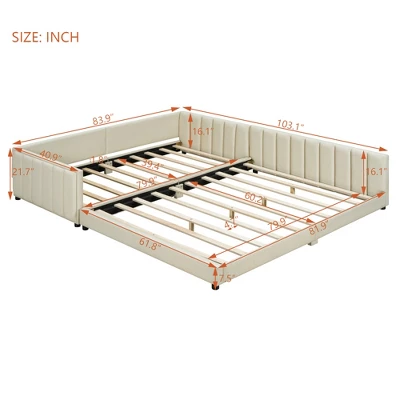 Crafted with your convenience and comfort in mind, this innovative set comprises a Twin XL Daybed and a Queen Flat Bed, offering not just a sleeping solution, but a lifestyle upgrade. This platform bed which is grounded is perfection for the little growing child for there are upholstered bed rails around, which provide both safety and softness. The rail can be installed on either side. In addition, when the child grows, it can be used as two separate beds for your service. Transform your living room, guest room, or home office effortlessly with our Mother-Son Bed Set. The Twin XL Daybed doubles as a stylish sofa during the day, perfect for lounging or hosting guests. At night, it seamlessly converts into a comfortable bed, ensuring a restful sleep experience. Meanwhile, the Queen Flat Bed serves as a spacious sleeping surface, accommodating you or your guests with ease.